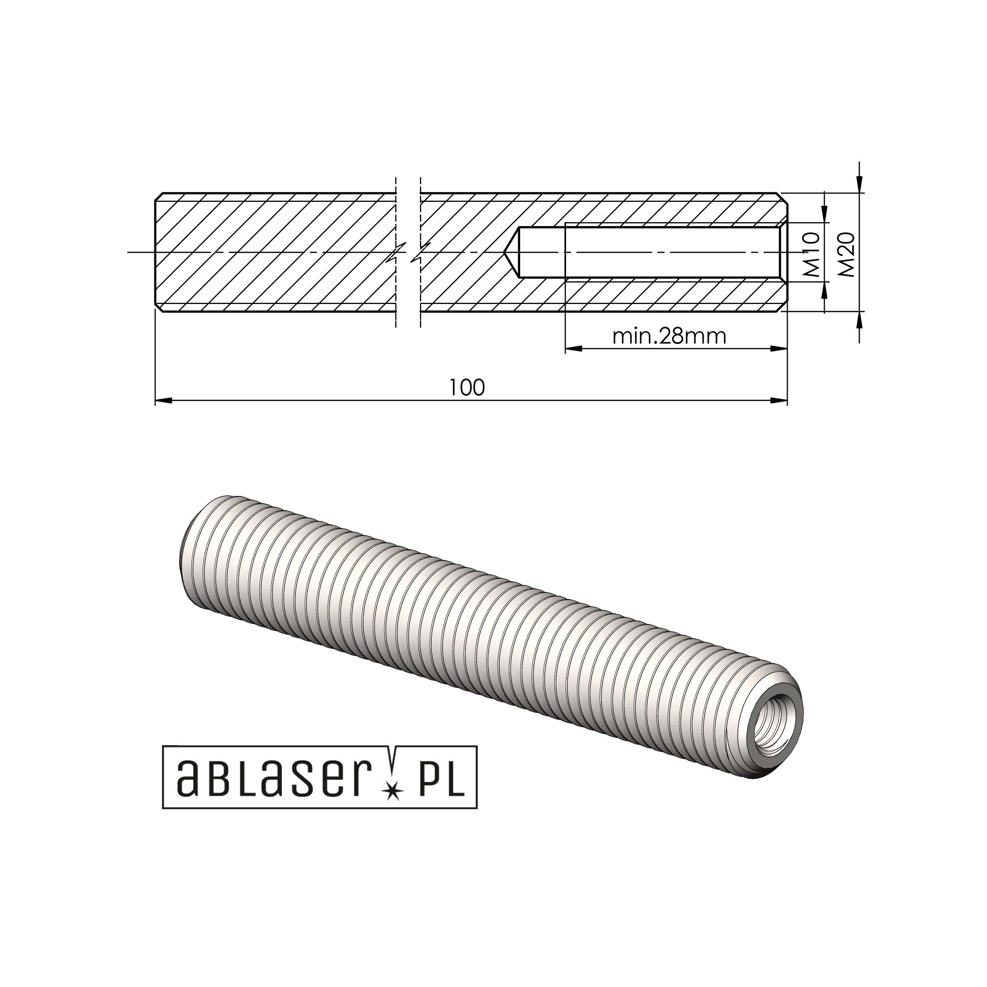 Kotwa montażowa gwint wewnętrzny INOX 304 A2 M20/M10 L100