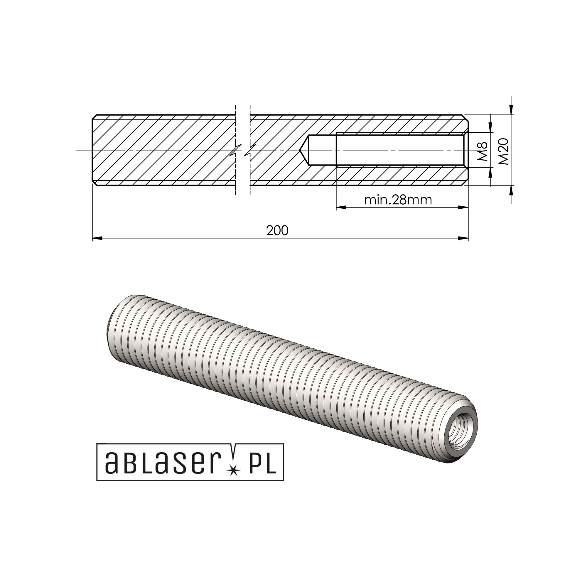 Kotwa montażowa gwint wewnętrzny INOX 304 A2 M20/M8 L200